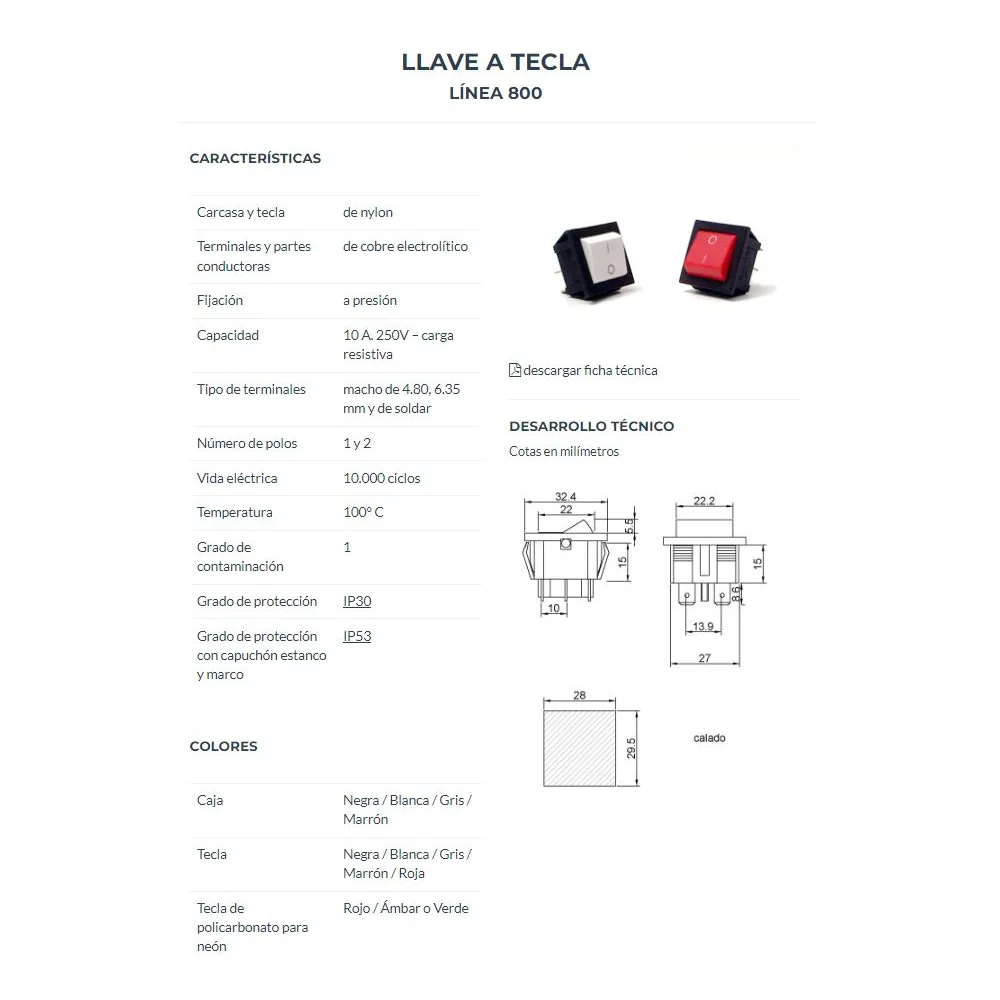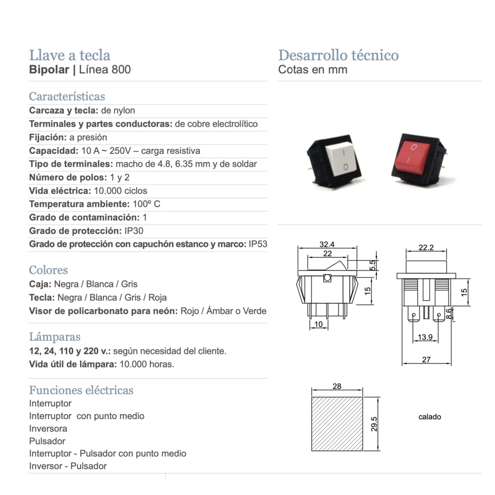 10 A,250V, exterior:32,4 x 27